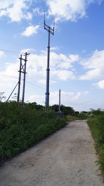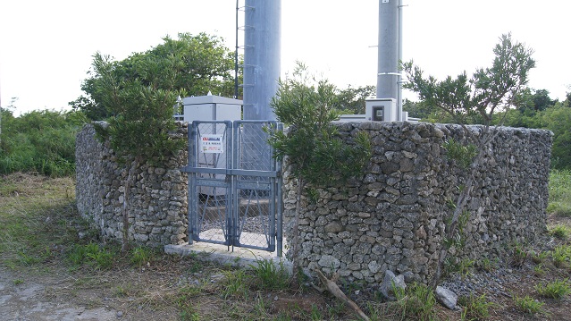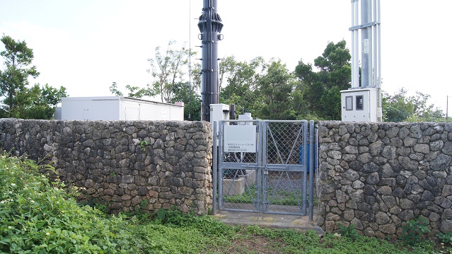 ※ auの基地局施設。ドコモ同様に石壁で囲っています。さすが沖縄セルラーですね。