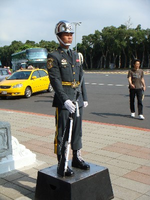 ※ 門番の方。勤務中は暑い中同じ姿勢、表情変えずに勤務。彼の下にはたくさの汗が。
