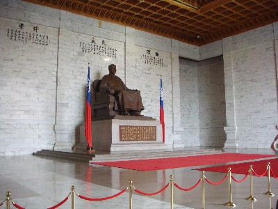 紀念館の中には蒋介石氏の像が。一階には、様々な資料が展示されている。
