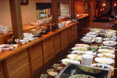 朝はバイキング形式ですが、目の前でつきたての餅が振る舞われたり