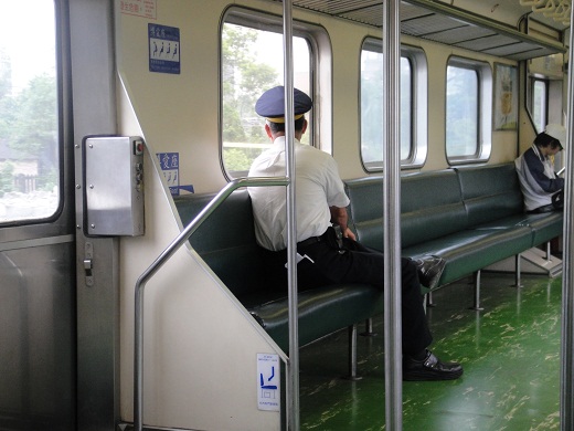 車掌さんが座席に座り窓を眺めていたり・・・・。