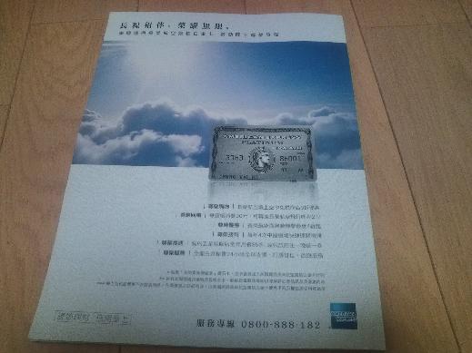 エバー航空の機内誌を見ていたら、アメックスの広告が。