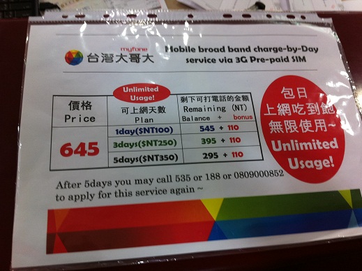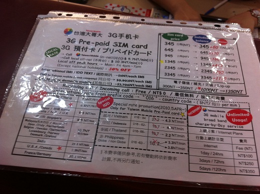 台北到着し、現地通貨に両替したあと早速、携帯電話カウンターへ。