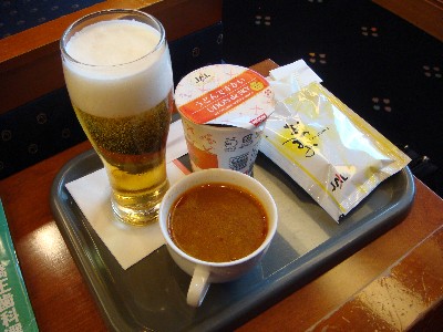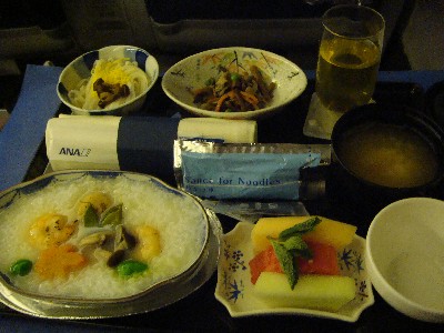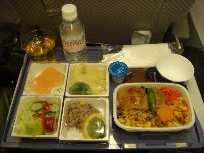 ※ 機内食。ミニワインを飲みながら、いただきつつ雑学王やタモリの番組を見て過ごす