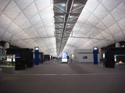 閑散。しかし窓側にある椅子を見ると所々寝ている人が、乗り継ぎができるハブ空港